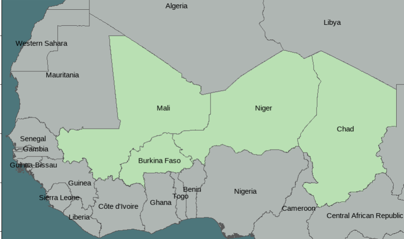 France - France was the colonizer of much of the Sahel, particularly in West Africa. They colonized all of the other countries in this simulation. Since those countries gained independence, France has continued playing an active role in the region. France has led multiple military operations throughout the region and retains strong economic ties to the countries in the region.